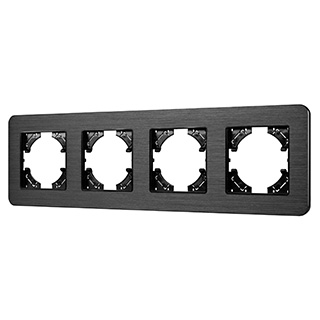 Рамка алюминиевая на 4 поста, под встраиваемый механизм. Цвет - черный. Среднего уровня герметичности IP20. Ориентация монтажа - горизонтальная (основным ориентиром служат посадочные выступы для накладки механизма).
